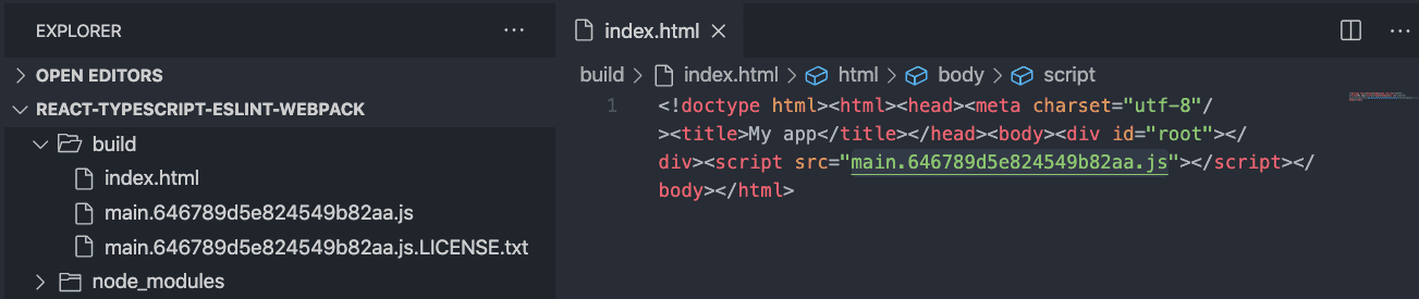 npm run buildAfter a few seconds, the Webpack will place the bundled files in the build folder.