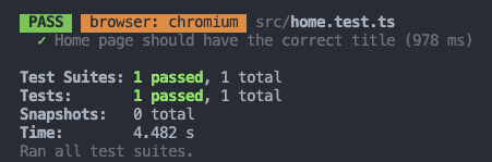 });Let’s run the test by entering the following command in a terminal: