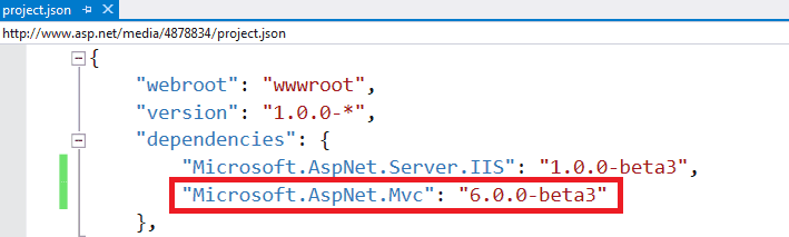 We now need to add the MVC dependency in project.json.