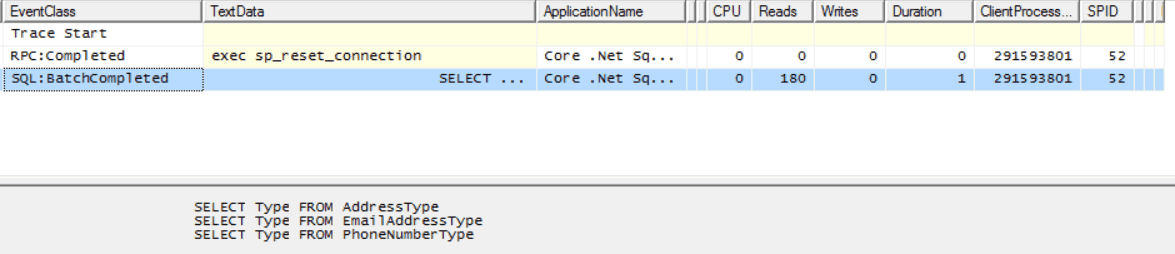 We can also see in SQL profiler that only a single database call was made: