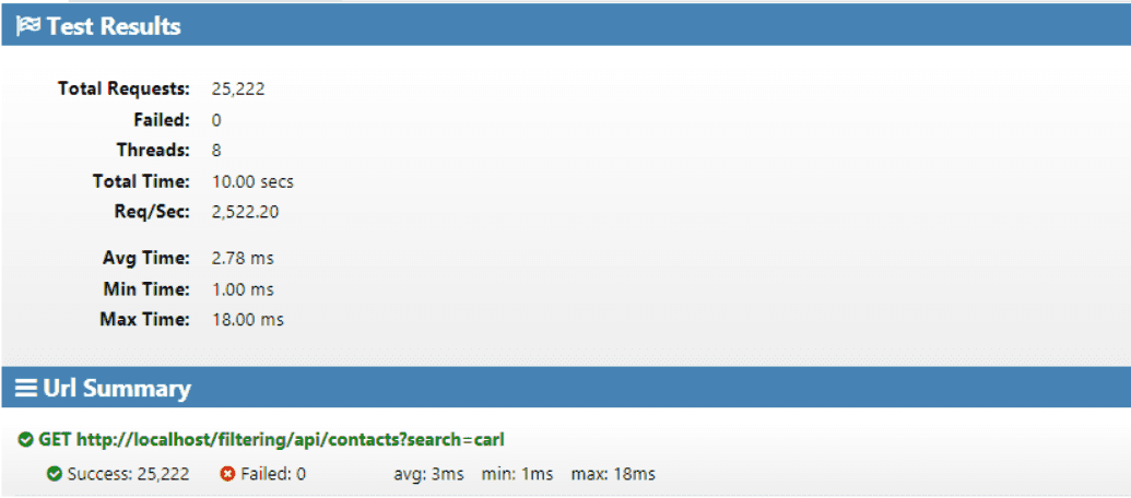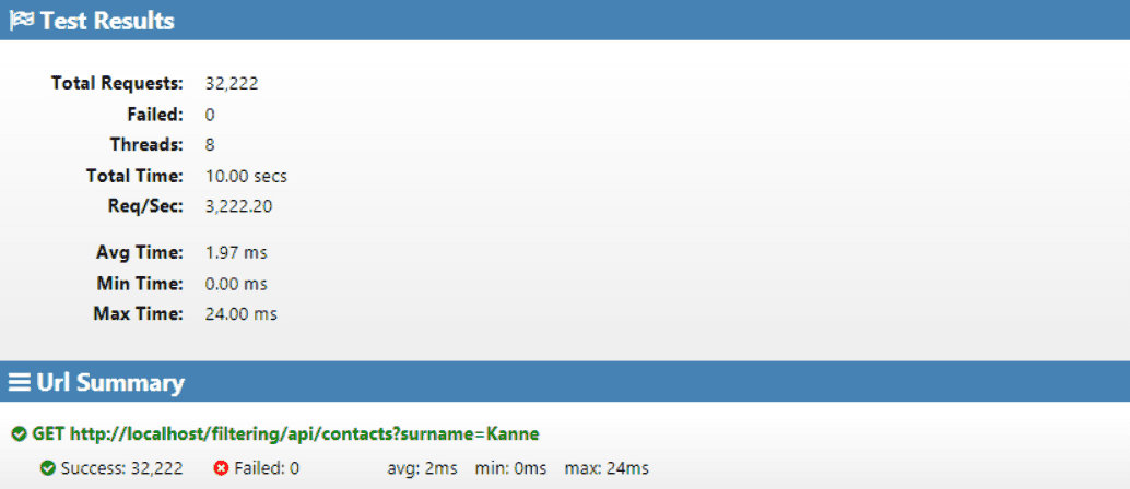 It also means the builder of the client application that consumes our API doesn’t have to do any client side filtering or searching which can have a nice positive impact on the overall performance as well.