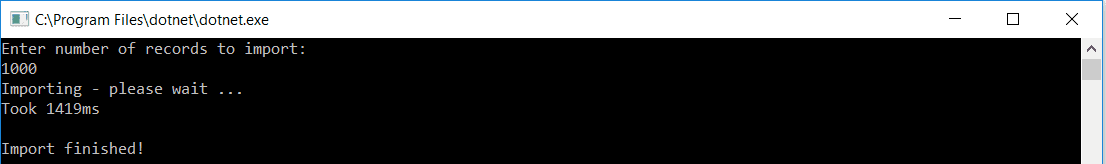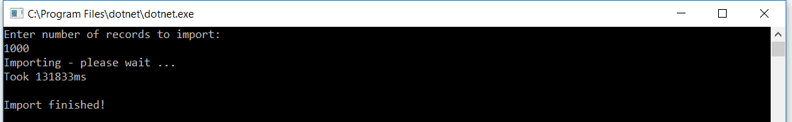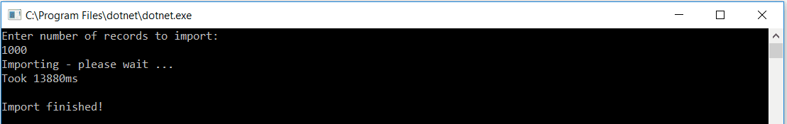 long timeTaken = import.Collection(recordCount).GetAwaiter().GetResult();