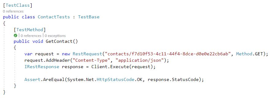 When producing the actual tests we could record the test using a IE plugin that integrates with Visual Studio’s load testing tool. This is great for load testing traditional server driven web applications. However, for testing web APIs, creating a c# unit test is much simpler and gives us a lot of flexibility.