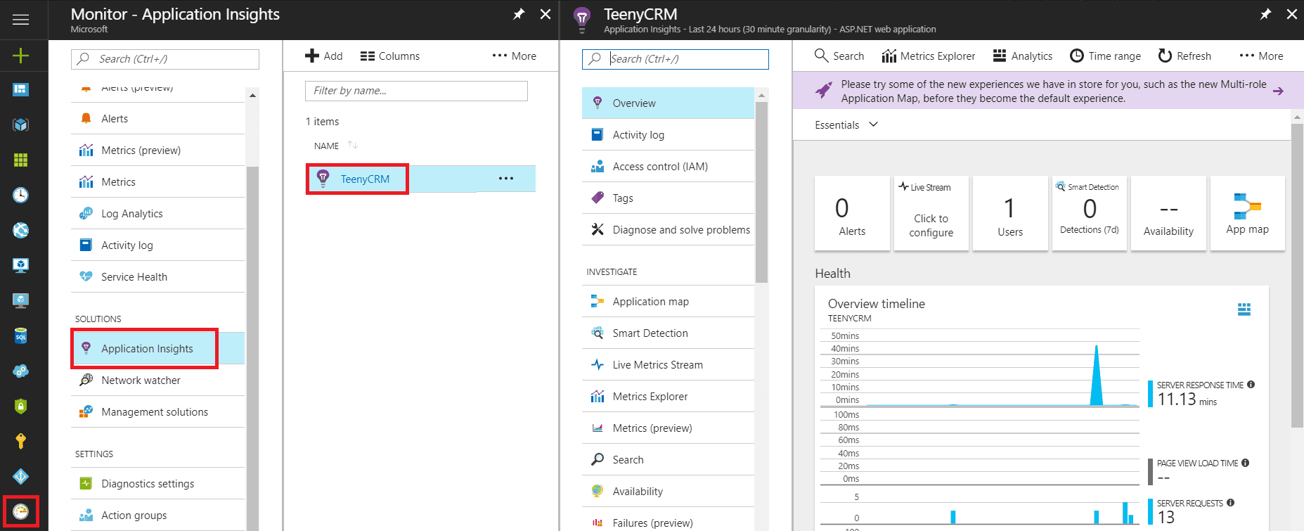 As mentioned before, Application Insights is Microsoft’s fully fledged APM tool. As well as wiring up locally, we can wire this up to the Azure Application Insights service. This allows us to view the information in the Azure Portal.