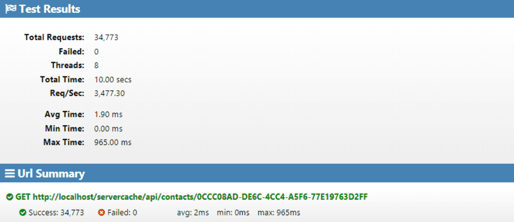 So, let’s now load test this again passing the ETag, with the redis cached item