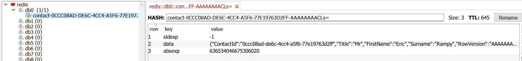The data is also cached in redis: