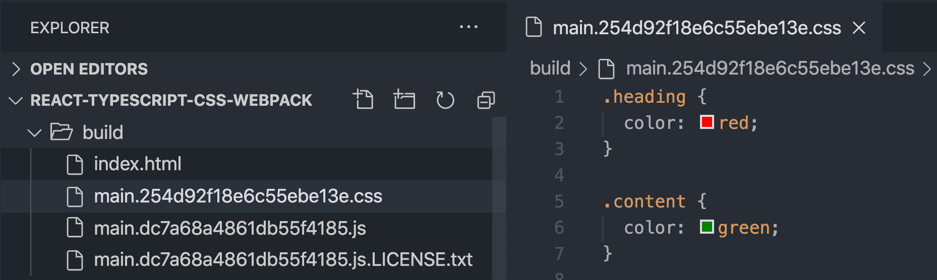 npm run buildWe’ll see a CSS file generated in the build folder: