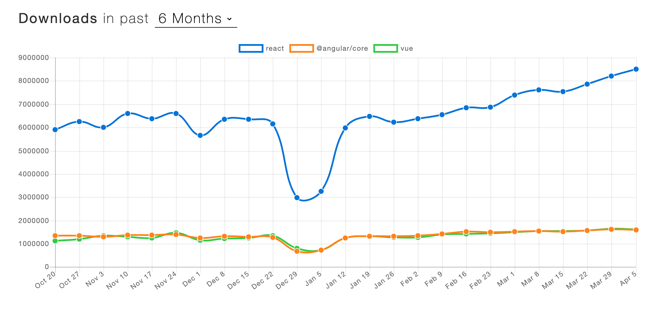 React is very popular in comparison to angular and vuejs and its popularity continues to increase.